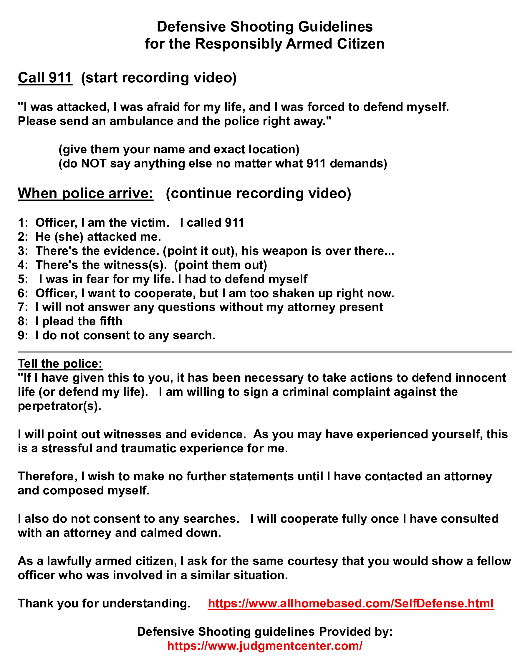 Defensive Shooting Guidelines